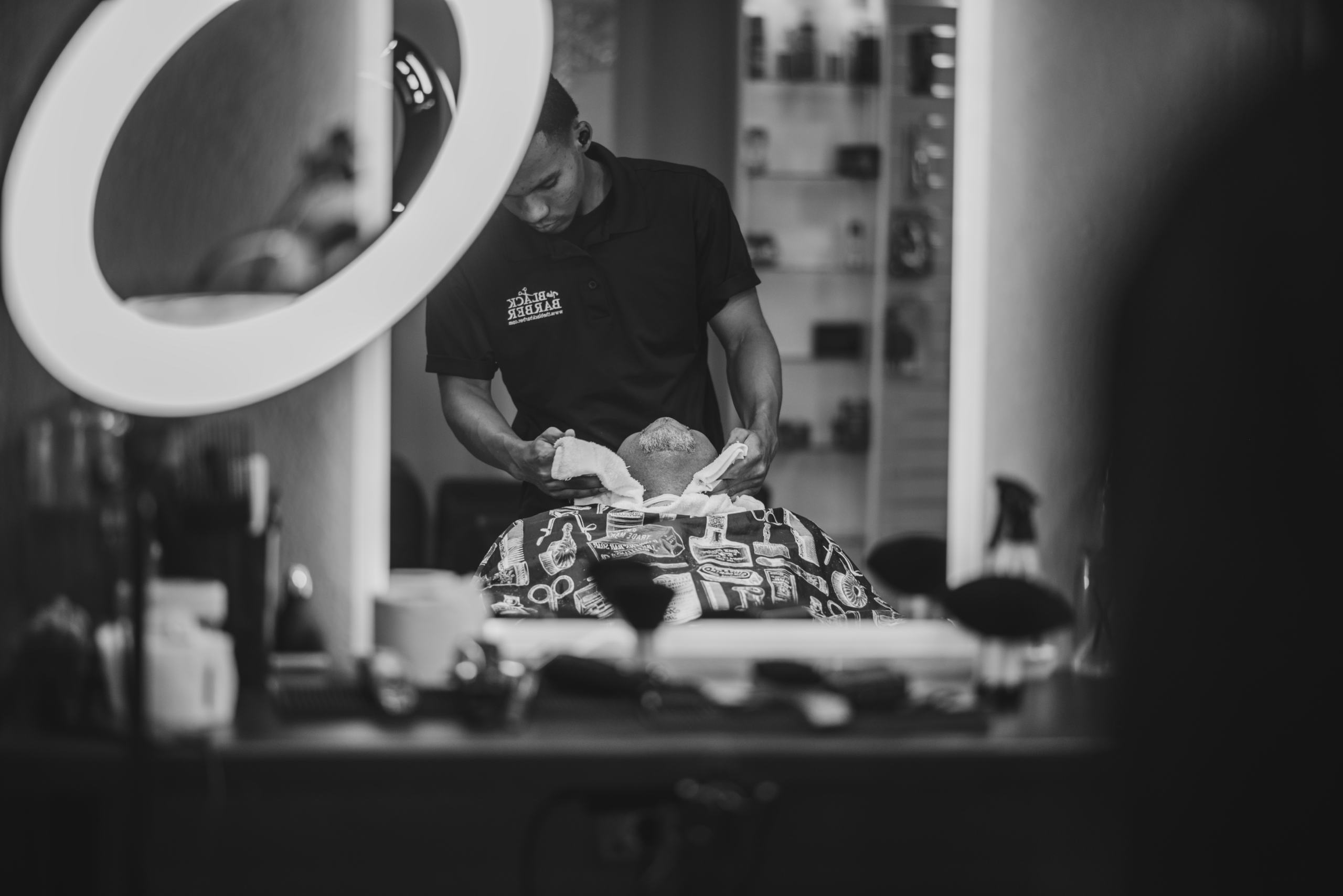 Le service de rasage comprend une huile de pré-rasage apaisante et un service de serviettes chaudes pour préparer le visage au rasage traditionnel au rasoir droit.